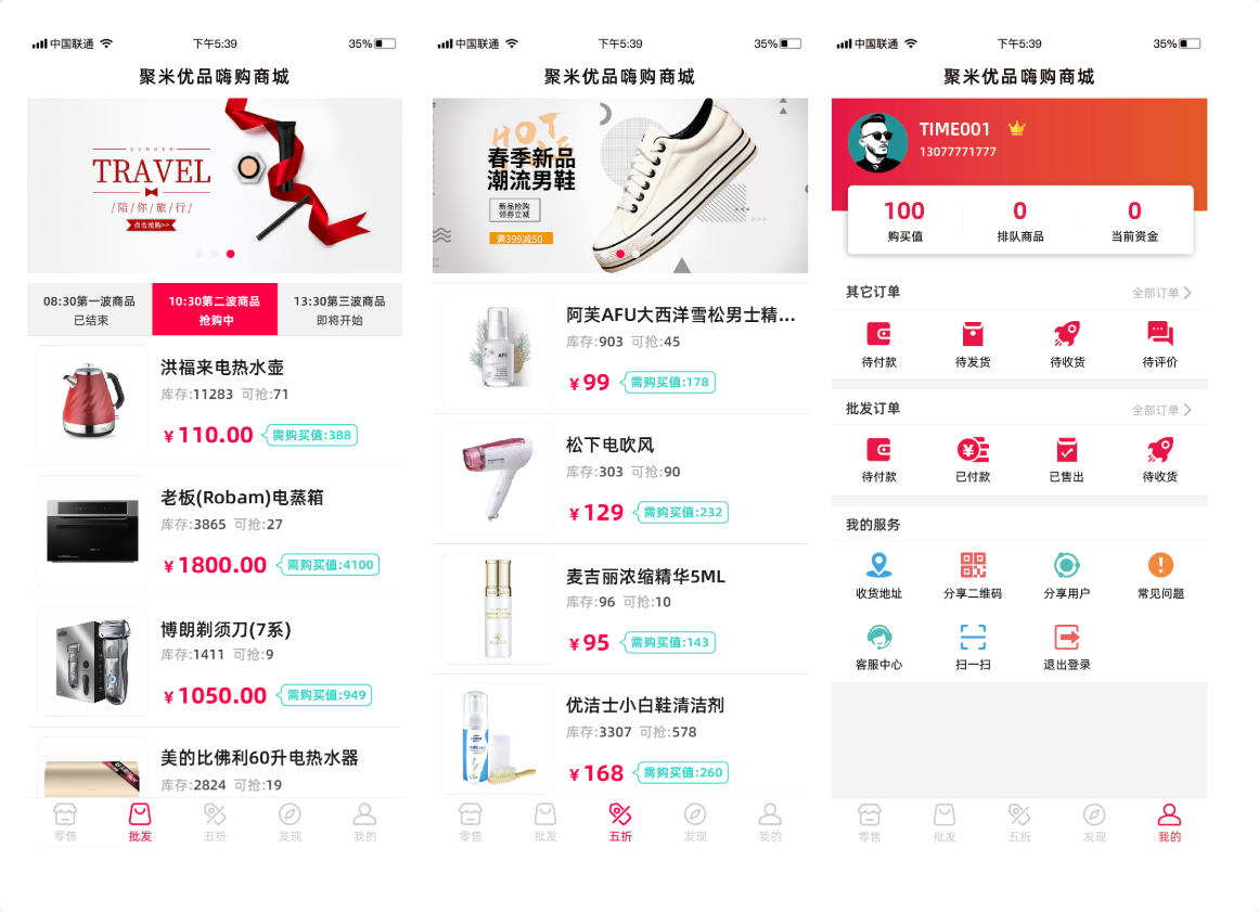 聚米优品商城是一个综合性的电子商务平台,具有以下功能模块: