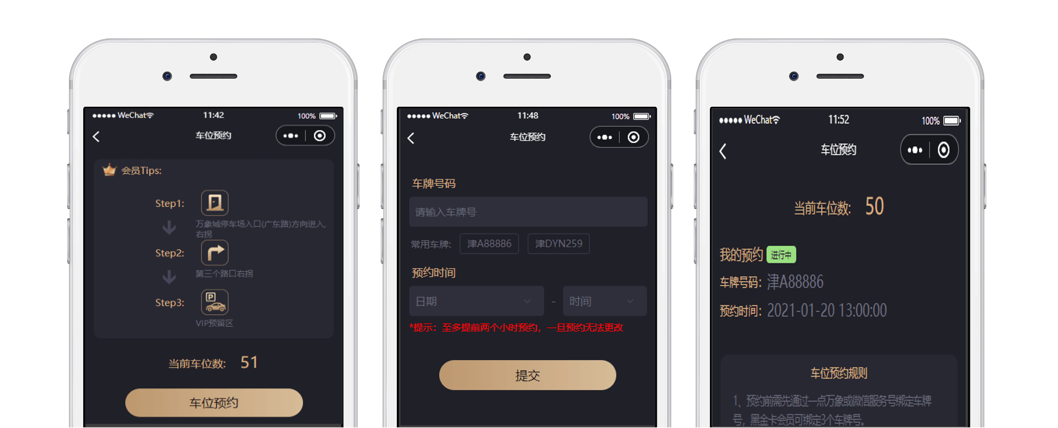 大客户可通过专属小程序预约停车位,与停车场系统打通大客户可通过预约信息快速进入VIP停车区。