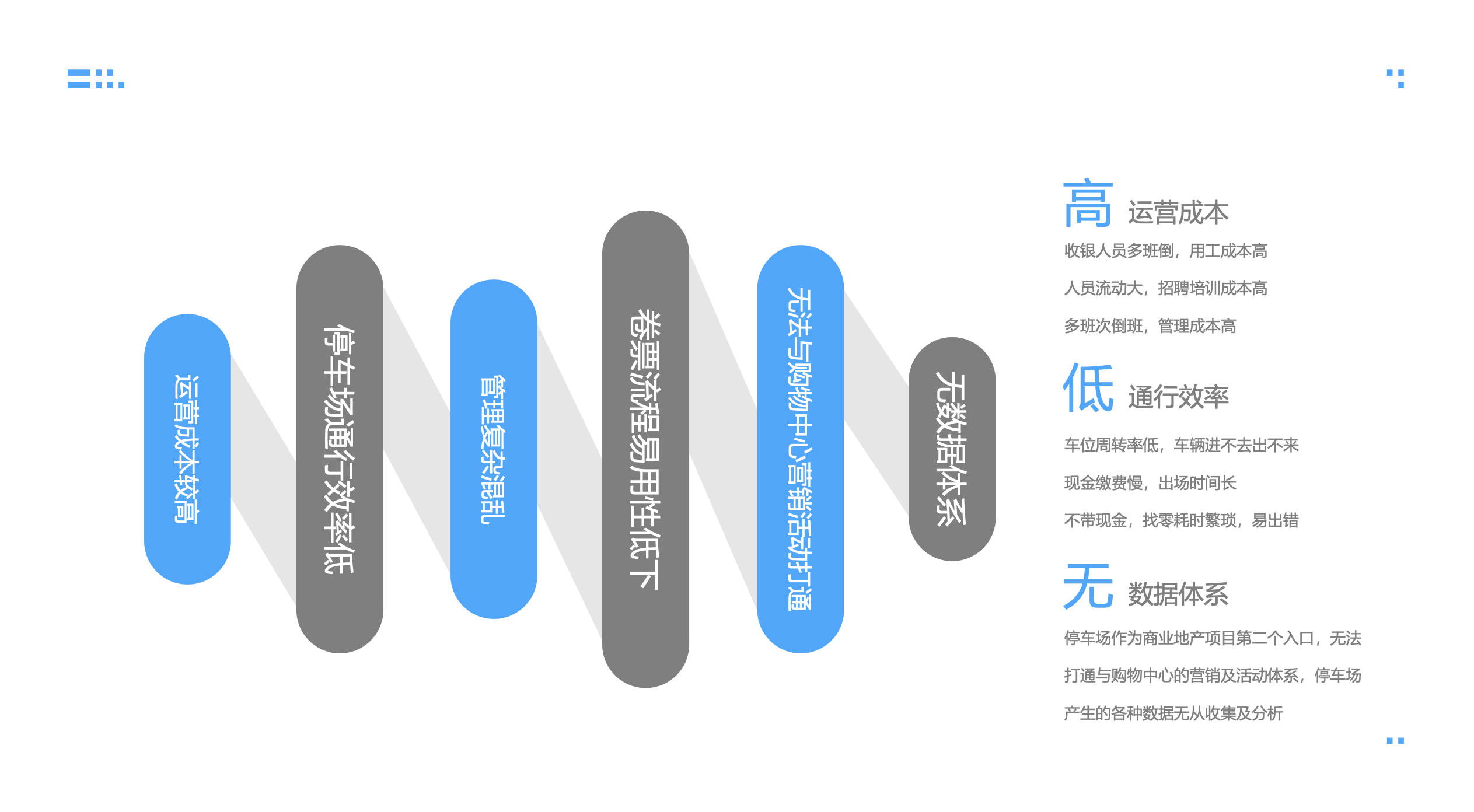 停车场作为商业地产项目第二个入口,无法打通与购物中心的营销及活动体系,停车场产生的各种数据无从收集及分析。